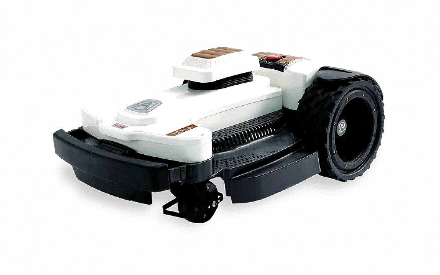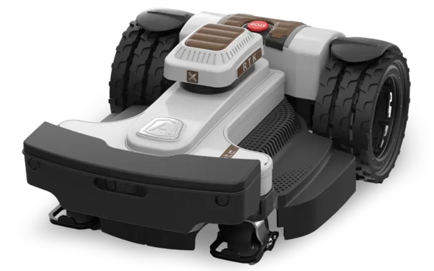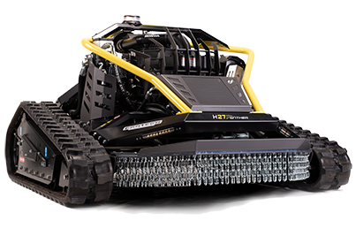 Macchina radiocomandata con motore auto-livellante progettata per lo sfalcio in condizioni estreme; quattro ruote motrici con piatto di taglio ventrale per la massima compattezza e agilità. Ruote pneumatiche di serie.